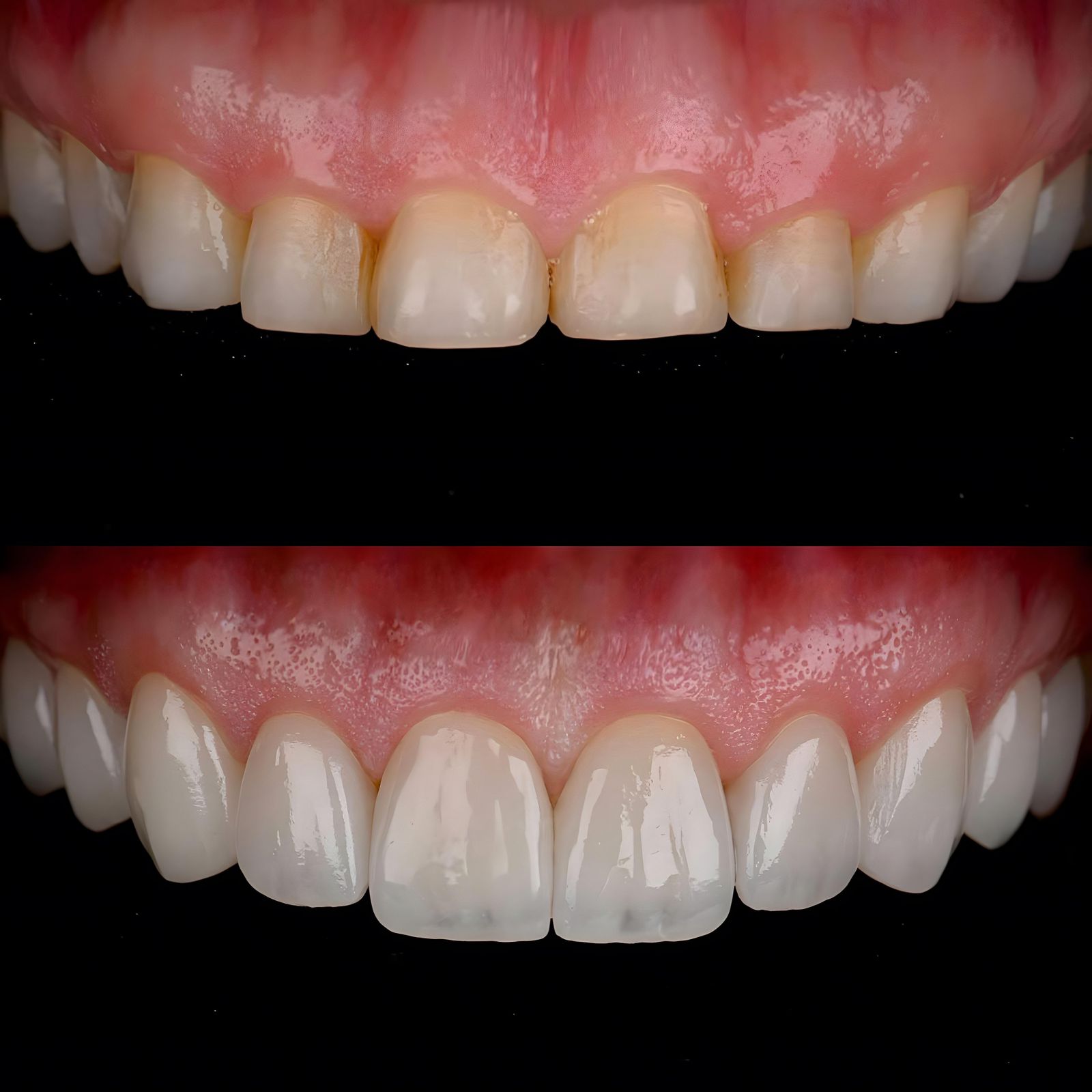 التبييض يُحسّن اللون فقط، بينما الفينير يُحسّن الشكل واللون والطول والتناسق.